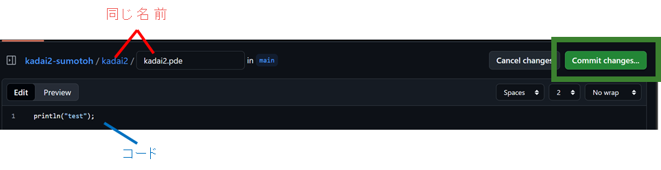 編集したあとは,提出時と同様にCommit Changesを押して保存&提出してください.