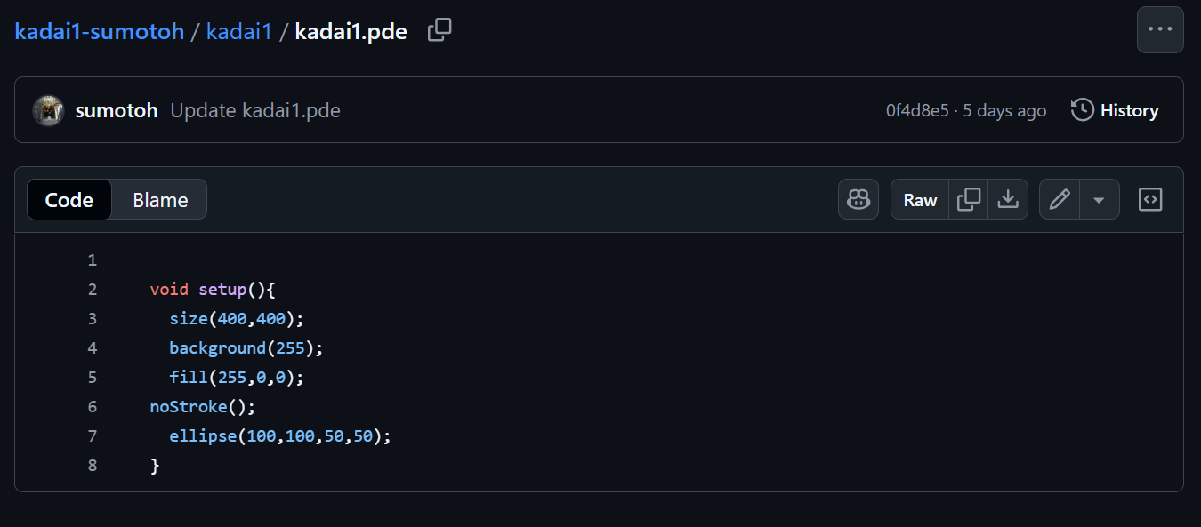 提出した課題フォルダをクリックし,さらに修正したいProcessingコードのファイルをクリックすると以下のような画面になります.